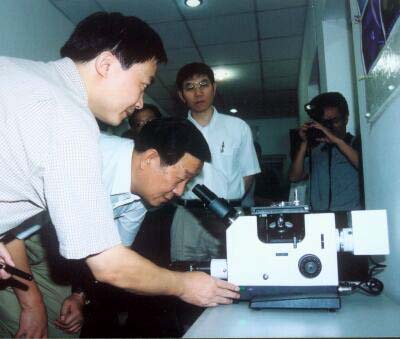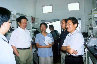 最后,程副部长一行来到生命科学学院,在生命科学学院院长施蕴渝院士的陪同下,参观了中科院结构生物学开放实验室、安徽省分子医学重点实验室和新建的生命科学大楼。
