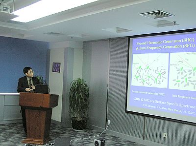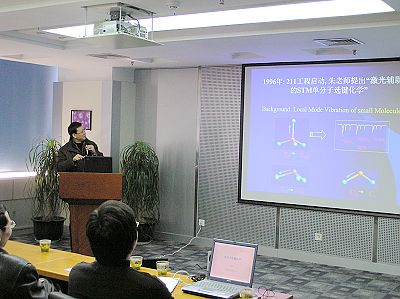 2006年2月7日,为纪念中国科学院选键化学重点实验室成立十周年,我室在9楼会议厅举办了“选键化学前沿”学术研讨会。来自大连化物所、复旦大学、化学所、加拿大Montreal大学、美国Princeton大学、香港科技大学和中国科技大学等国内外科研单位的30余名专家学者参加了研讨,十位学者作了学术报告。报告的领域涉及化学反应动力学、分子振转能级计算、激光优化控制选键化学、STM单分子选键化学、分子芯能级选键化学、界面化学物理、氢键中的原子核量子效应等,引发了与会者之间热烈的讨论与交流。最后,选键化学实验室主任朱清时院士回顾了实验室十周年的发展历程,为研讨会划上了圆满的句号。