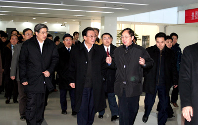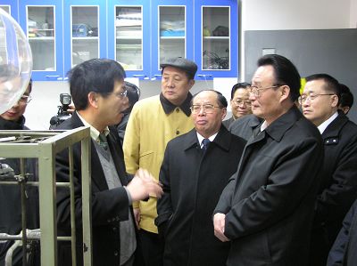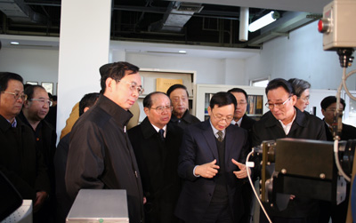 随后,吴邦国一行饶有兴趣地参观了中科大-新科隆联合实验室、分子反应动力学实验室、量子物理与量子信息实验室,认真听取了相关科研人员的介绍,并不时地就有关问题进行询问,与科研人员亲切交流,勉励科研人员再接再厉,刻苦攻关,勇于攀登科学高峰,为增强自主创新能力,建设创新型国家做出更大贡献。