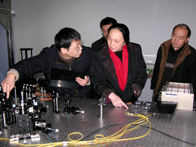 主任助理王晓平教授简要介绍了国家实验室的筹建进程、队伍建设、最新研究成果和建设目标。随后,方新一行参观了分子反应动力学实验室、中科大-新科隆联合实验室、量子物理与量子信息实验室,认真听取了相关科研人员的介绍。