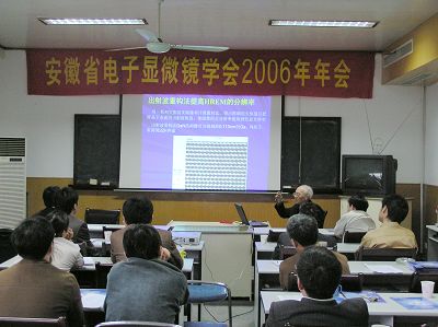 2006年4月12日至14日,安徽省电镜年会(2006)在合肥微尺度物质科学国家实验室(筹)举行。本届年会,由安徽省电镜学会主办,合肥微尺度物质科学国家实验室(筹)协办。安徽省十几个科研院所和单位的50多位电镜工作者出席了会议,6家国际上著名的电镜厂商也派来10余位代表参加。这次会议,可谓安徽省电子显微学界的一次盛会。