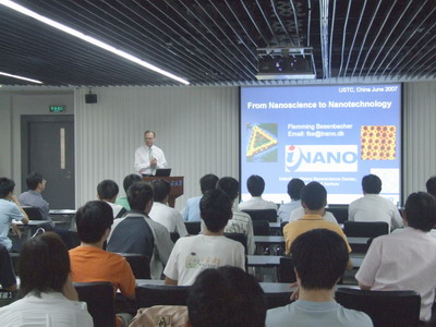 访问期间,Flemming Besenbacher教授做了《From Nanoscience to Nanotechnology》、《Organic molecules on surfaces studied by STM: Dynamics, chirality, organization and self-assembly》两个精彩的学术报告,并热情地回答了我校师生的提问。Flemming Besenbacher教授一行还在相关教授和工作人员的陪同下,兴致勃勃地参观了微尺度国家实验室相关研究部和国家同步辐射实验室。