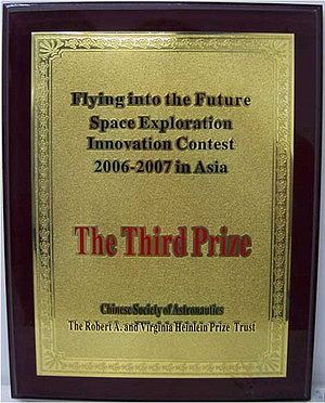 由海因莱因基金会倡议的“飞向未来—太空探索创新竞赛”开始于2003年,先后在欧洲和俄罗斯主办过两届洲际比赛,引起了国际一大批有志于航天科技的青年的热烈关注。这次由中国宇航学会和海因莱因基金会共同主办首届亚洲地区“飞向未来—太空探索创新竞赛”,在亚洲区选送的54件作品中,中国占44件。经亚洲评委的匿名函审,按照“新颖性和原创性、技术依据和研究深度、预期产生的经济效益和社会效益、具有的商业价值和投资吸引力”四项评审标准,评选出20件作品进入答辩终评,角逐一、二、三等奖和创新奖。评委由来自韩国、日本、印度、新加坡、以色列、中国大陆以及台湾和香港地区的12位专家组成。