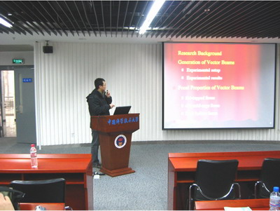 12月2日上午第二场学术交流会在我校合肥为尺度国家实验室科技展厅进行。微尺度国家实验室的四位同学和南京大学的三位同学分别做了精彩的学术报告。会上,同学们踊跃提问,气氛十分热烈,许多令人激动的科研成果让在座的同学们称赞不已。会后,大家还对彼此感兴趣的问题进行了充分的交流,交流会收到了预期的效果。