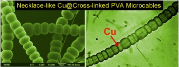 图1. 化学法一步合成项链状铜/交联PVA核壳微纳电缆。