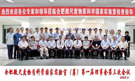 6月14日,合肥微尺度物质科学国家实验室(筹)(以下简称实验室)第一届理事会第三次会议在我校召开。会议由实验室理事会理事长、中国科大校长朱清时院士主持。实验室理事会副理事长唐叔贤院士,理事会成员王志珍院士、朱邦芬院士、李家明院士、欧阳钟灿院士、陈凯先院士、侯建国院士、科技部基础司张先恩司长、中科院基础科学局李定局长、安徽省科技厅徐根应厅长、基金委计划局孟宪平副局长、中国科大王东进副校长,以及科技部、中科院、教育部、基金委等理事单位的相关部门负责同志出席了会议。出席会议的还有实验室施蕴渝院士、张裕恒院士,各研究部主任及研究骨干以及学校相关部门负责同志。