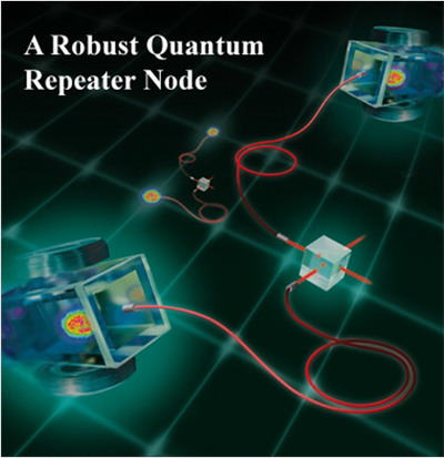 为了解决上述困难,潘建伟、陈增兵和赵博等在理论上提出了具有存储功能的,并且对信道长度抖动不敏感、误码率低的高效率量子中继器方案(相关工作发表在《物理评论快报》上)。同时,中国科大潘建伟小组及其德国、奥地利的同事经过多年的合作研究,在逐步实现了光子-原子纠缠、光子比特到原子比特的量子隐形传态等重要阶段性成果的基础上(先后已有四项相关实验工作发表在《物理评论快报》或《自然物理》上),最终实验实现了完整的“量子中继器”基本单元。由于量子中继器实验实现在量子信息研究中的重要意义,《自然》杂志为此专门向科学新闻媒体发布了题为“量子推动 (Quantum Boost)”的新闻稿,称赞该工作“扫除了量子通信中的一大绊脚石”。