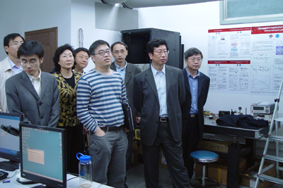 4月13日下午,国家发展和改革委员会高技术产业司綦成元司长在安徽省省长助理、省创新办主任花建慧,安徽省发改委副主任吴青松等陪同下参观我室量子物理与量子信息实验室,陈增兵教授简要汇报了量子通信技术研究团队、研究成果和产业化的思路及近期工作计划。