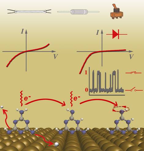 在电子器件不断小型化的过程中,科学家期望可以达到利用单个分子构建电子元件的目标。近年来,已经有不少研究组在实验上成功地演示了单分子器件。然而,这些研究主要是利用已有的分子进行单一功能的器件构造。考虑到寻找具有理想电子学功能的分子十分困难,通过分子手术的方法对已有分子进行改造显得十分必要。另一方面,对分子器件进行功能集成是我们进入分子电子学时代的一个关键。以往的功能集成往往都是分子间集成。如果能够在单个分子上实现多功能集成将大大提高器件集成度,从而构造更小、更快、能耗更少的电子设备。因此,实现单分子多功能集成一直是分子器件研究中的一个重要挑战。