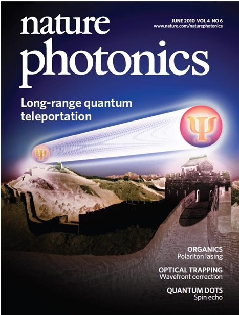 6月1日出版的英国《自然》杂志子刊《自然•光子学》以封面论文形式刊登了我室量子物理与量子信息研究部科学家的最新研究成果:自由空间量子隐形传态的实验研究[Nature Photonics 4, 376-381 (2010)]。在该工作中,由中国科学技术大学与清华大学组成的联合小组,成功实现了世界上最远距离的量子隐形传态,将量子隐形传态的实现距离扩展到16公里,比此前的世界纪录提高了20余倍。该实验结果首次证实了在自由空间进行远距离量子隐形传态的可行性,向全球化量子通信网络的最终实现迈出了重要的一步。该工作获得了科技部重大科学研究计划、中科院知识创新工程重大项目、国家自然科学基金项目等的资助。