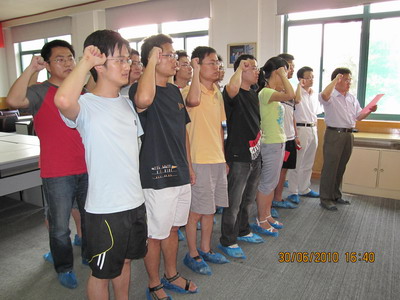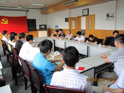 李凡庆老师首先与与会党员一起回顾了我党艰苦奋斗发展壮大、实事求是取得伟绩的历程,教育勉励大家要端正入党动机,提高自身的政治素质,和平年代不能放松对自己的要求。他指出,加入党组织只是人生的新起点,不仅要从组织上入党,更要从思想上入党、时刻以高标准严要求约束自己,要真正成为合格、优秀的共产党员,还有很长的路要走。接着,李老师指出了入党宣誓的意义。他说,我们党即将迎来89岁的生日,举行入党宣誓仪式,是我党的优良传统。入党誓词言简意赅,概括了我们党对党员的基本要求,也概括了党员对党组织和党的事业所应承担的政治责任。他希望大家在今后的学习、工作和生活中努力履行对党的承诺,发挥党员的模范带头作用。对在校研究生党员而言,现阶段主要任务是做好自己的学习科研工作,同时也不能放松对自己政治素养和生活作风的要求。对即将毕业的党员同学,希望他们今后无论是继续从事科研动作还是在其它行业工作,都要牢记党的宗旨,脚踏实地工作,创新实践科学发展观。李老师还就党员发展工作提出了希望和要求,期望大家积极做好对身边各方面表现优秀又有入党意愿同学的推荐和考察工作,及时把他们纳入党员大家庭,增强基层党组织的活力和凝聚力。最后,结合近期动员部署的“创先争优”活动,李老师对党员同学也提出了要求,希望各支部和党员进一步增强责任感和服务意识,以更积极的态度、更鲜活的形式、更扎实的工作,不断推进我室“创先争优”活动深入有效开展。