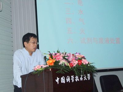 微尺度国家实验室副主任鲁非教授主持了下午的活动。微尺度国家实验室副主任陈旸教授首先作了精彩的安全知识讲座。他首先结合实验室的具体情况介绍了实验室大楼的消防设施和一些应急处理机制,接着从实验安全的专业角度,着重就实验室电、水、火、气体、试剂等诸多方面做了详细的使用说明,并提出了合理的操作规程和管理规范。
