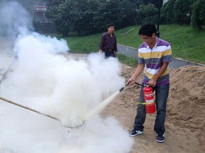 讲座后,同学们观看了“2000年安徽庐阳宫火灾”的消防教育片,影片中触目惊心的场景再次警示大家消防安全的重要性。大家现场模拟演习了安全疏散,并冒雨进行了灭火演练,通过自己动手实践了使用灭火器的常识。