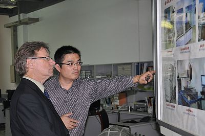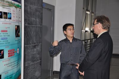 2011年11月4日,环太平洋大学联盟(Association of Pacific Rim Universities,简称APRU)新任秘书长Christopher Tremewan博士访问合肥微尺度物质科学国家实验室。 实验室量子物理与信息研究部张军博士和固体氧化燃料电池研究组谢斌副研究员分别就相关研究领域和科研成果向Christopher Tremewan博士做了介绍和交流。Christopher Tremewan博士还参观了相关研究组。