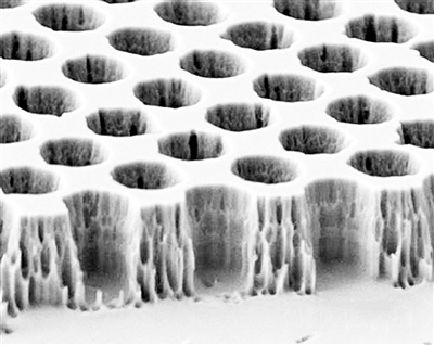 正是这些直径仅为3/4微米、深为3微米、分开排列在一个4/5微米宽的网格中的凹洞发挥了捕获光线的作用。当设备对齐使得凹洞直指太阳时,大部分入射光会穿过这些凹洞进入底部,在此处被钨吸收。就像热力学定律指出的那样,这些光线旋即会释放出来并辐射出去。然而,来自于一个凹洞内部的热辐射在逃入外面的世界时,很可能会遇到凹洞的壁。如此一来,整个吸收和再辐射过程又再次发生,结果会使凹洞的钨变得非常热。