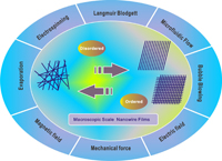 图1.左图:从无序纳米线到有序纳米线组装结构示意图;右图:一维纳米构筑单元组装方法示意图。