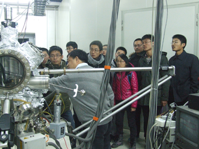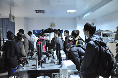 随后,“化学学堂班”师生一行参观了低维物理与化学研究部的低温超导实验室,原子分子科学研究部的电子碰撞谱学实验室、冷原子痕量探测实验室、单分子科学实验室,量子物理与量子信息研究部的量子物理与量子信息实验室和量子计算实验室。在实验室老师的带领和解说下,“化学学堂班”师生初步了解了各实验项目的基本情况,尤其对相关实验室自主创新研制的实验仪器有着浓厚的兴趣。整个参观过程中,“化学学堂班”的同学们与实验室的老师们保持着轻松良好的互动,不时向实验室老师提出问题,并时常对实验室老师们的耐心细致的解答报以热烈的掌声。