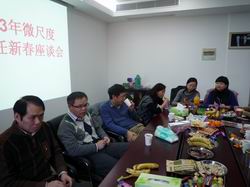 2012年12月31日下午,合肥微尺度物质科学国家实验室在理化科学实验中心三楼会议室召开了本年度的学生工作队伍迎新座谈会,会议由国家实验室学工负责人、研究生部主任石磊教授主持,国家实验室党总支书记王兵教授、国家实验室副主任王晓平教授、鲁非教授和陈旸教授参加了会议,教学秘书刘燕萍、赵茹以及各年级班主任都参加了座谈会。
