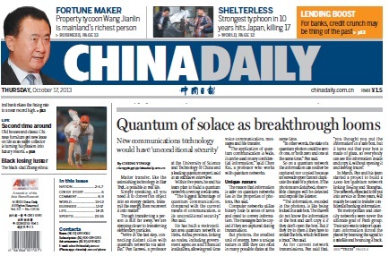 "There is fierce international competition in quantum communication, especially from the USand Germany," Pan said.