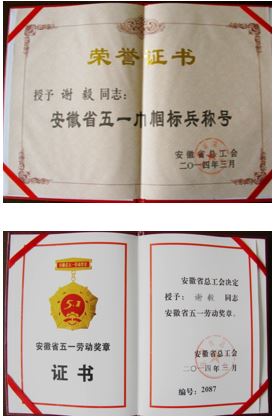 会议对省五一巾帼标兵、标兵岗,省工人先锋号,省工会女职工组织“两个覆盖”工作先进单位等女职工先进集体和个人进行表彰。阮怀楼宣读表彰决定。我室谢毅教授因在科研与教学方面的显著成绩,荣获本届安徽省五一巾帼标兵和安徽省五一劳动奖章。