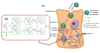 Fe3O4纳米晶体组成的,利用纳米材料的表面效应和肿瘤细胞内溶酶体等酸性微环境,载体粒子就会在肿瘤细胞内同时释放出青蒿素和