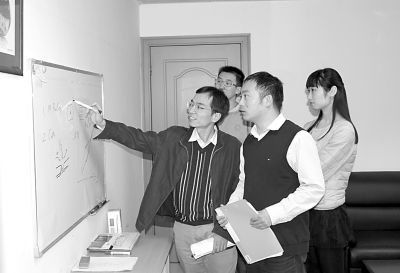 李震宇(左一)和曾杰(右二)给学生讲解问题 刘爱华摄