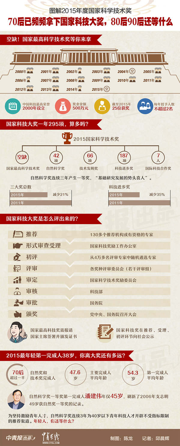 今天,国家科学技术奖励大会在北京人民大会堂召开,2015年度国家科技奖“大榜”随之揭晓,备受瞩目的国家自然科学奖一等奖,颁给了中国科学技术大学潘建伟院士领衔的“多光子纠缠及干涉度量”项目。作为该项目的第一完成人,潘建伟也因年仅45岁的年龄优势,刷新了2006年支志明49岁获自然奖一等奖的记录。