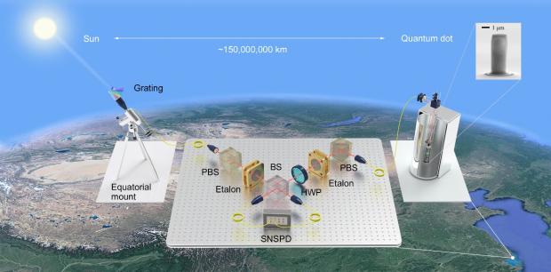 【新華社合肥9月6日】中国科学技術大学は3日、中国内外の専門家が世界で初めて、量子ドット単一光子と太陽光の間の二光子干渉、量子もつれ、非局在性の実験観察に成功したことを明らかにした。今回の研究では独立光子間の量子干渉実験を1億5千万キロ離れた二つの独立した光源にまで拡大し、初めて天文学的スケールで量子統計学原理の普遍性を検証し、熱光場の量子化を裏付ける実験証拠を提供した。