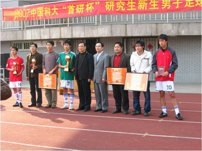 为丰富同学们的课余生活,活跃校园文化,校团委、研究生院、校研究生会、校学生足球协会举办了2007年中国科大“首研杯”男子足球赛。这是我们2007级研究生的重要足球赛事,在微尺度国家实验室大力支持下,通过团总支和研究生会的精心组织,同学们积极响应,成立了微尺度国家实验室足球队,本次比赛共有包括微尺度国家实验室足球队在内的十六支队伍参加。
