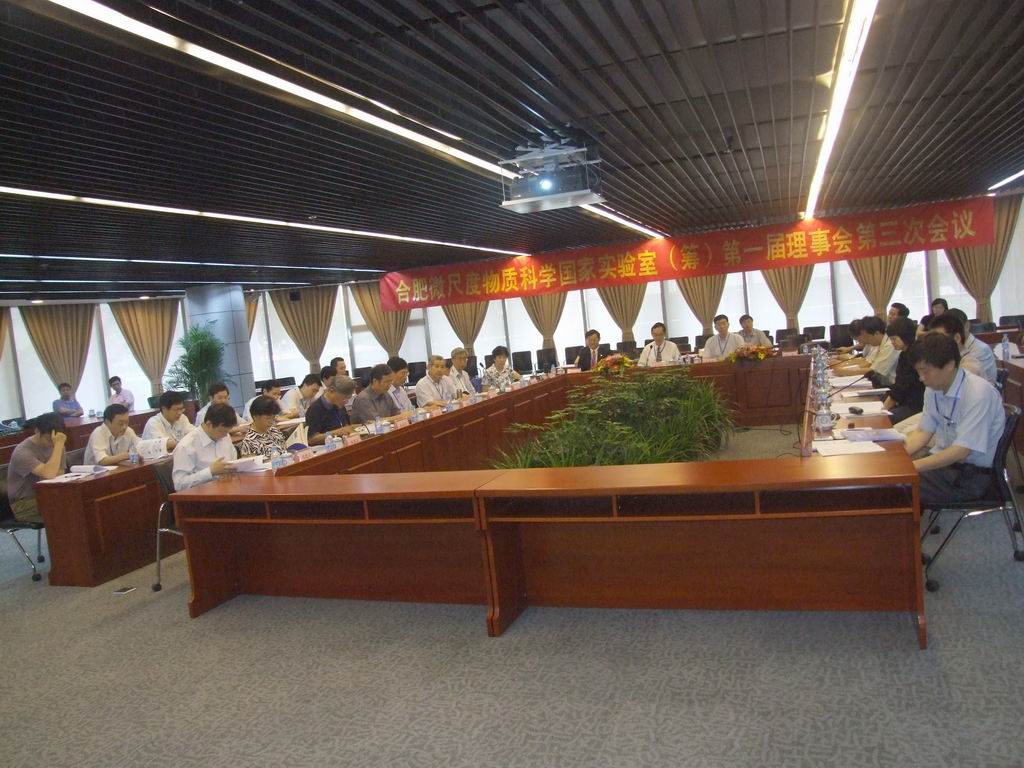 6月14日,合肥微尺度物质科学国家实验室(筹)(以下简称实验室)第一届理事会第三次会议在我校召开。会议由实验室理事会理事长、中国科大校长朱清时院士主持。实验室理事会副理事长唐叔贤院士,理事会成员王志珍院士、朱邦芬院士、李家明院士、欧阳钟灿院士、陈凯先院士、侯建国院士、科技部基础司张先恩司长、中科院基础科学局李定局长、安徽省科技厅徐根应厅长、基金委计划局孟宪平副局长、中国科大王东进副校长,以及科技部、中科院、教育部、基金委等理事单位的相关部门负责同志出席了会议。出席会议的还有实验室施蕴渝院士、张裕恒院士,各研究部主任及研究骨干以及学校相关部门负责同志。