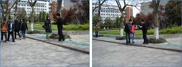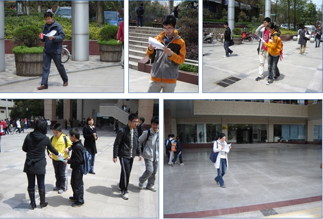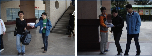4月7日中午11点钟,08和09级微尺度班委带着事先制作好的倡议宣传稿和宣传横幅来到东区美食广场,倡议活动正式拉开了帷幕。趁着大部分科大人中午去食堂吃饭的机会,微尺度的班委们热心地向过往的同学和老师们散发了宣传倡议书。