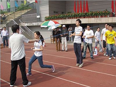 7日上午9时,在简短的开幕式之后,各类赛事竞相登场。首先是团体项目跳绳比赛。由每个学院出10名选手参加比赛,微尺度选手团结合作,跳出了水准,并获得了第六名的好成绩。