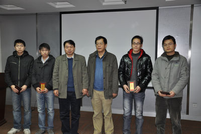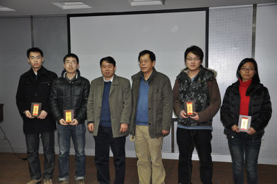 此次颁奖仪式由微尺度团总支书记赵智老师主持。国家实验室副主任陈旸教授和研究生部主任石磊教授出席了颁奖仪式。陈旸教授发表了讲话,他指出,国家实验室具有学科交叉的优势,研究生学术论坛为各个学科同学之间的交流提供了一个很好的平台,我们要善于从其他的学科中汲取营养,获取灵感,并且鼓励在场的同学踊跃参加研究生学术论坛,把自己做的好的工作拿出来和大家共同分享交流,希望明年的时候会有更多的同学参加这项有意义的活动。随后,两位教授为学术论坛获奖者颁发了获奖证书和奖品,并合影留念。至此,第五届微尺度国家实验室研究生学术论坛拉下了圆满的帷幕。