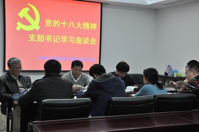 各研究生班党支部书记结合自身的工作和生活实际,交流了学习十八大精神的心得体会。各支部将组织开展系列学习活动,原原本本学习党的十八大报告和党章,全面理解和准确把握党的十八大精神实质,以更加饱满的热情投入到学习和研究工作中。
