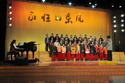 七十七年前的12月9日,在这片大地上多少热血的中华儿女谱写出拯救民族于危亡的壮丽史诗;数十年东风吹过,不变的是那一腔永恒的爱国豪情。2012年12月9日,纪念“一二•九”运动七十七周年歌咏大赛决赛在东区大礼堂揭开了序幕,在这两年一度的重大盛典中,微尺度国家实验室研究生合唱队凭借校歌《永恒的东风》和自选曲目《东方之珠》两首歌曲,取得了二等奖第二名的好成绩。本次合唱比赛从开始准备到最终决赛历时近两个月,在此期间微尺度合唱队刻苦锻炼,勤奋练习,最终以优异的成绩顺利的通过了11月24日的预赛。随后,在声乐指导杨令潇同学的细心指导和2011级班主任周仕明老师、2012级班主任杨淑红老师以及微尺度团总支、研究生会成员的精心协调下,合唱队经过反复训练,和指挥以及钢琴伴奏日渐配合默契,每一次练习中每个人都在学习并且进步,所有人都在决赛临近的日子里摩拳擦掌。