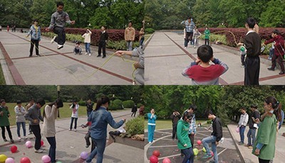 本次活动开展了多种趣味活动项目,包括“趣味跳绳比赛”、“二人三足赛跑”以及“盲人踩气球”等项目,活动以小组比赛的形式开展,不仅吸引了三十多名研究生踊跃参加,还引来了在广场进行休闲活动的人们的围观和参与。经过数轮游戏后,活动圆满的完成,最后,工作人员为参加活动的研究生和附近参与者派发了纪念品。