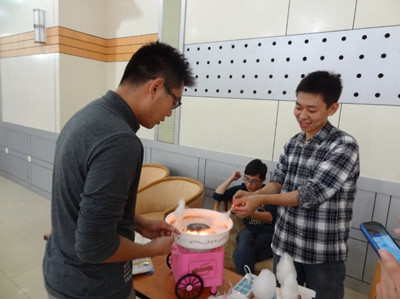“夹气球”、“我是麦霸”等互动环节调动起了全场观众的热情。计算机院提供的棉花糖机更是给晚会平添了不少乐趣。