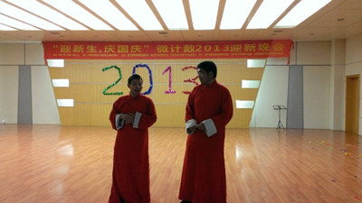 “夜色朦胧,秋意渐凉,歌声曼妙,轻舞飞扬”。9月29日晚,在西校区活动中心,我校微尺度国家实验室、计算机学院、数学学院研究生会联办了2013级“庆国庆,迎新生”文艺晚会。晚会在热闹而有序的气氛中拉开序幕,丰富多彩的内容给人留下了深刻印象,吸引了众师生驻足观看。
