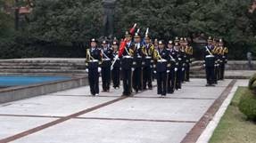 11日一早,同学们身着军装在广场集合,列队完成后,静静地等待那庄严一刻的到来,心中的热情早已驱走了秋日清晨的寒冷。活动正式开始后,由25名微尺度国家实验室2013级研究生、博士生组成的升旗方阵,身穿深蓝色队服,戴着白色手套,迈着整齐有力的步伐,精神饱满地来到升旗台前。在国旗台下,伴着《义勇军进行曲》雄浑嘹亮的国歌声,同学们敬出一个个标准的军礼,鲜艳的五星红旗在郭沫若广场前迎着旭日冉冉升起, 同学们心中的爱国热情也随着国旗缓缓升起;随后,在激昂的校歌声中,中科院院旗和校旗徐徐升起,迎风飘扬。