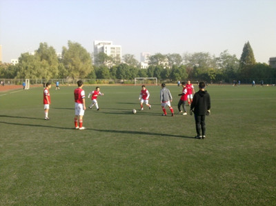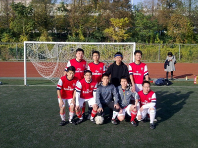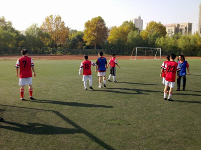 11月17日我们面对的是经抽签决定的淘汰赛对手地空学院队。地空队实力稍占上风,然而我们的反击也卓有成效,双方互有攻势,比赛十分胶着。可是就在上半场比赛快结束前,我们后卫的一次失误给了对手的一次良机,他们的前锋冷静摆脱后抽射得分。下半场我们加强了攻势,创造出了一两个机会,但都未能破门。反而对手抓住我们的传球失误,再下一城。此后我们后卫在禁区附近的一次疑似手球犯规,被判点球,对手推射死角入网。0:3落后的情况下,我们只能放手一搏大举进攻,却遗憾的被对手反击得分。最终我们以0:4告负,止步首研杯八强。
