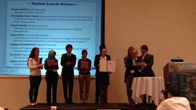 为奖励在材料分析领域有出色工作的博士研究生,大会设立了优秀学生奖,在全世界范围内的与会者中根据相关研究工作每两年评选5人左右。颁奖典礼于12月4日上午举行,日本科学振兴协会微束分析委员会主席Y. Saito教授为阮瞩同学颁发了奖状和奖金。