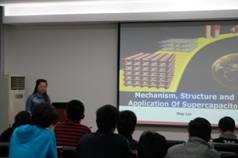 本期活动以“科学联系世界”为主题,来自不同领域的多位同学分别对自己从事的研究工作进行了介绍。首先,微尺度物质科学国家实验室2013级研究生吴昊向大家介绍了气溶胶的测量,使活动有了一个良好的开始。接着高鹏飞同学讲述了他关于量子化学计算方面的研究,内容生动有趣,激发了在场同学的深厚兴趣。另外姜兵同学、刘美同学和苏虹阳同学分别对各自所研究的金属-有机骨架材料(MOFs)、超级电容器以及具有凹面结构的贵金属纳米晶体进行了讲解,内容深入浅出,赢得了同学们的一致好评。