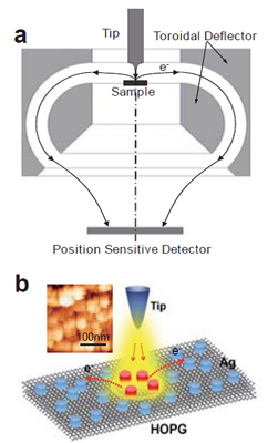 电子能量损失谱学是分析材料化学组成的一种重要手段,它通过测量电子的非弹性散射获得原子分子的信息。然而在常规的电子散射中,非弹性电子只占极少的比例,大多数电子是没有能量损失的弹性散射电子。合肥微尺度物质科学国家实验室的徐春凯副教授、陈向军教授及其同事将电子能谱学技术与扫描探针技术结合自主研制了扫描探针电子能谱仪,并利用针尖场发射电子束与石墨表面的银纳米结构相互作用,测量散射电子的能谱。实验表明,银纳米结构激发出的局域等离激元场可以导致非线性的电子散射现象,使得非弹性电子的强度显著增强。罗毅教授提出了一种单电子两步过程的理论模型解释了这种非线性电子散射。