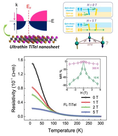 图:阴离子碘固溶实现二维TiTeI能带打开;Ti3+局域磁阻的自旋阻挫构形导致电子自旋相关散射;超薄TiTeI纳米片的巨磁阻效应。 上述研究得到了国家基金委、科技部、中国科学院、能源材料化学协同创新中心的支持。