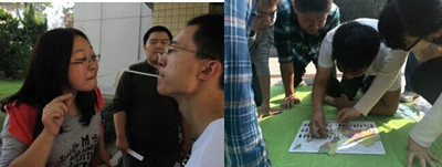 由于在路线的每个地点都有对应的任务需要完成,所以每到一个地点,同一组同学都纷纷发挥自己的聪明才智或者敏捷身手,通力合作,一起完成关卡游戏。在这个过程中,同学们玩得非常高兴!