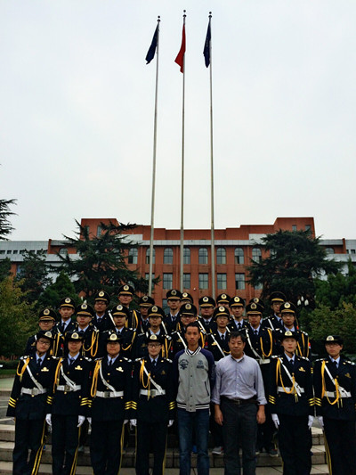 升国旗活动是对学生进行思想政治教育的一项重要内容,我班为能举行升旗进支部活动感到荣幸。经过认真刻苦的两次训练,2014年10月13日清晨六点半,27名同学在郭沫若广场上统一着装列队,心情激动迎来了升旗仪式。
