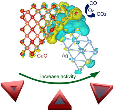 金属-氧化物复合材料界面极化增强一氧化碳氧化反应的原理图示