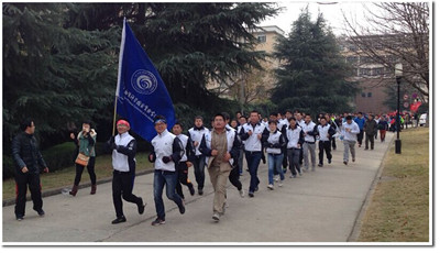 随着一声鸣响,参跑队员迈开矫健的步伐,热情高涨,不顾冬日的严寒,带着一腔爱国之情,将汗水洒在路上,将青春展现在风中。道旁是拉拉队员的呐喊,为我们的健儿们摇旗助威。大家互相帮助互相鼓励,共同跑到了终点,圆满的完成了此次活动。