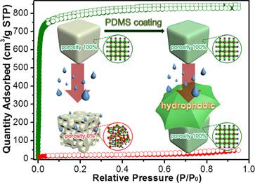 通过表面疏水修饰后增强金属有机骨架材料对水或湿度的稳定性