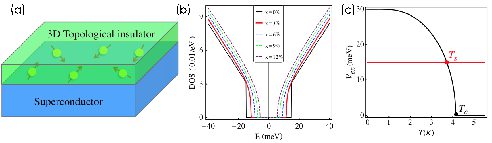 在新发表的工作中,秦维同学首次提出通过在拓扑绝缘体和s波超导体界面稀释掺杂磁性原子的方法(如图(a)所示)来打破时间反演对称性,从而可以在一种更为简单的结构中实现手性拓扑超导体。他们的研究证明,适度的磁性原子不仅不会破坏超导体和拓扑绝缘体界面的超导性(图(b)),并且还能通过隶属于界面拓扑态的库珀电子对来实现长程铁磁有序。由于超导性和铁磁性的共存,可以通过温度诱导的拓扑量子相变(图(c))实现手性拓扑超导体,并进一步为马约拉纳费米子的实验探测提供新的更可行的平台,其显著优势是集超导、拓扑与磁性于同一界面。